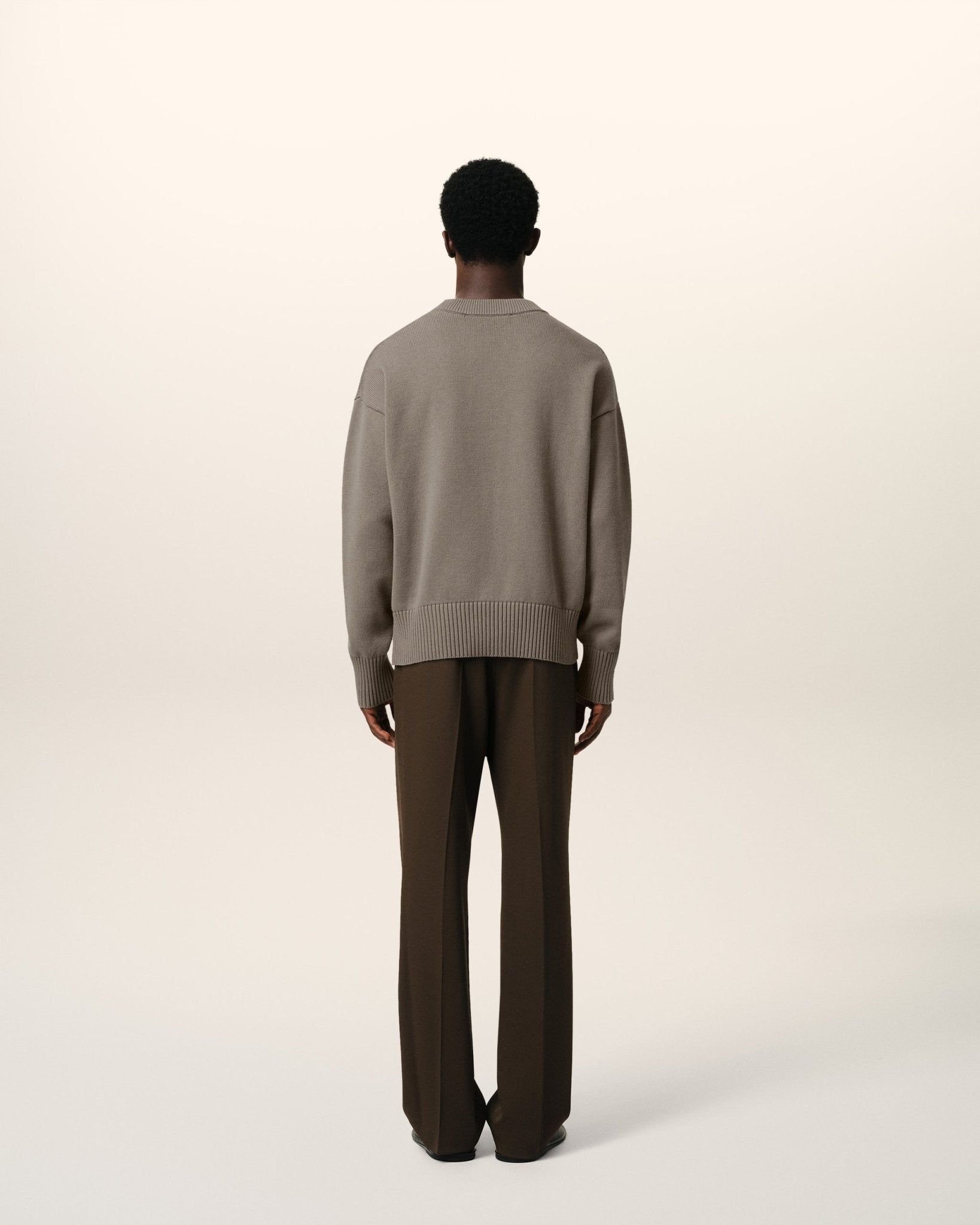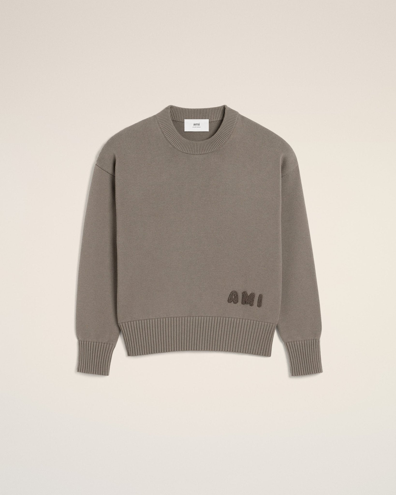 BEIGE COTTON AMI EMBROIDERED CREWNECK SWEATER