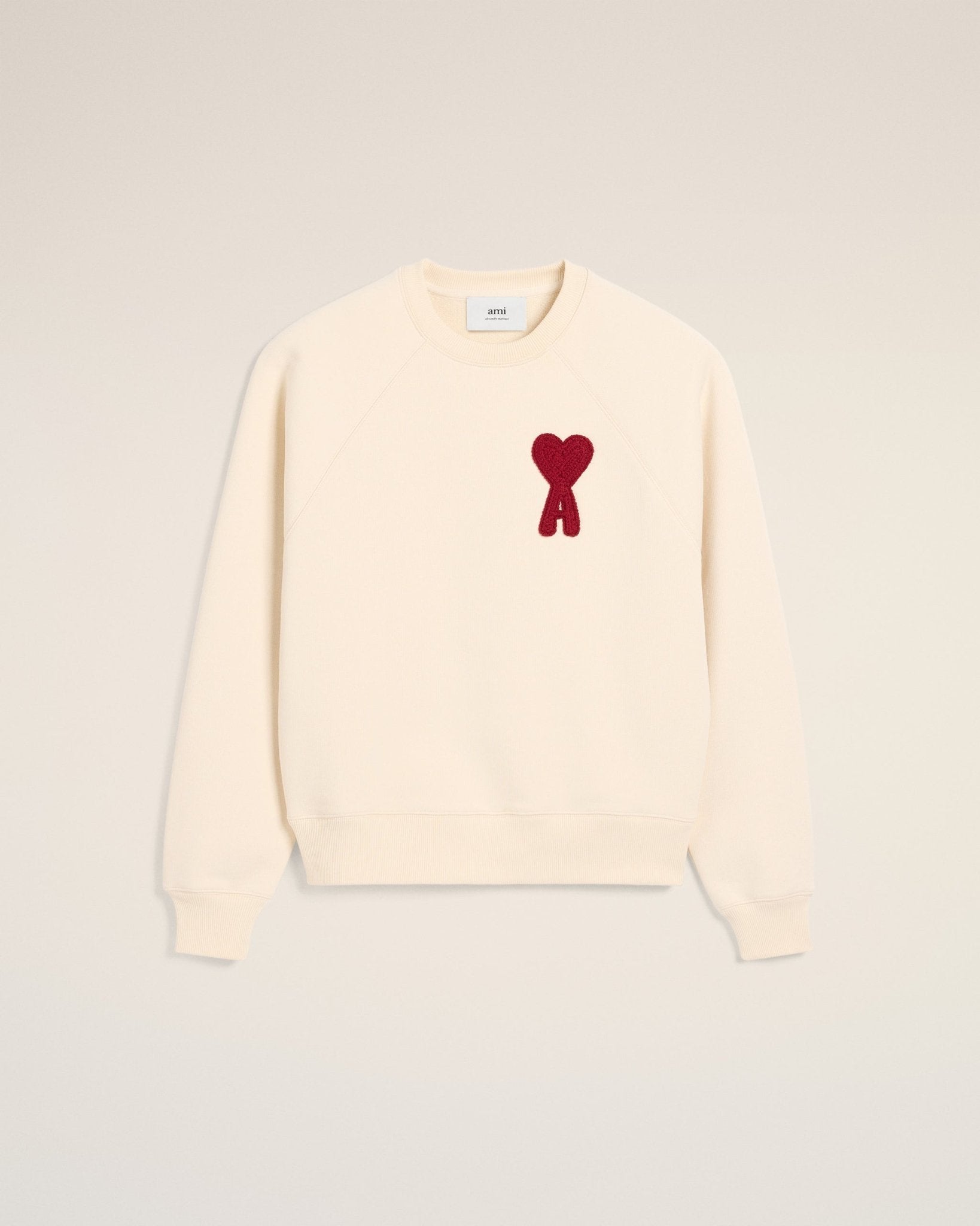 BEIGE COTTON AMI PATCH SWEATSHIRT